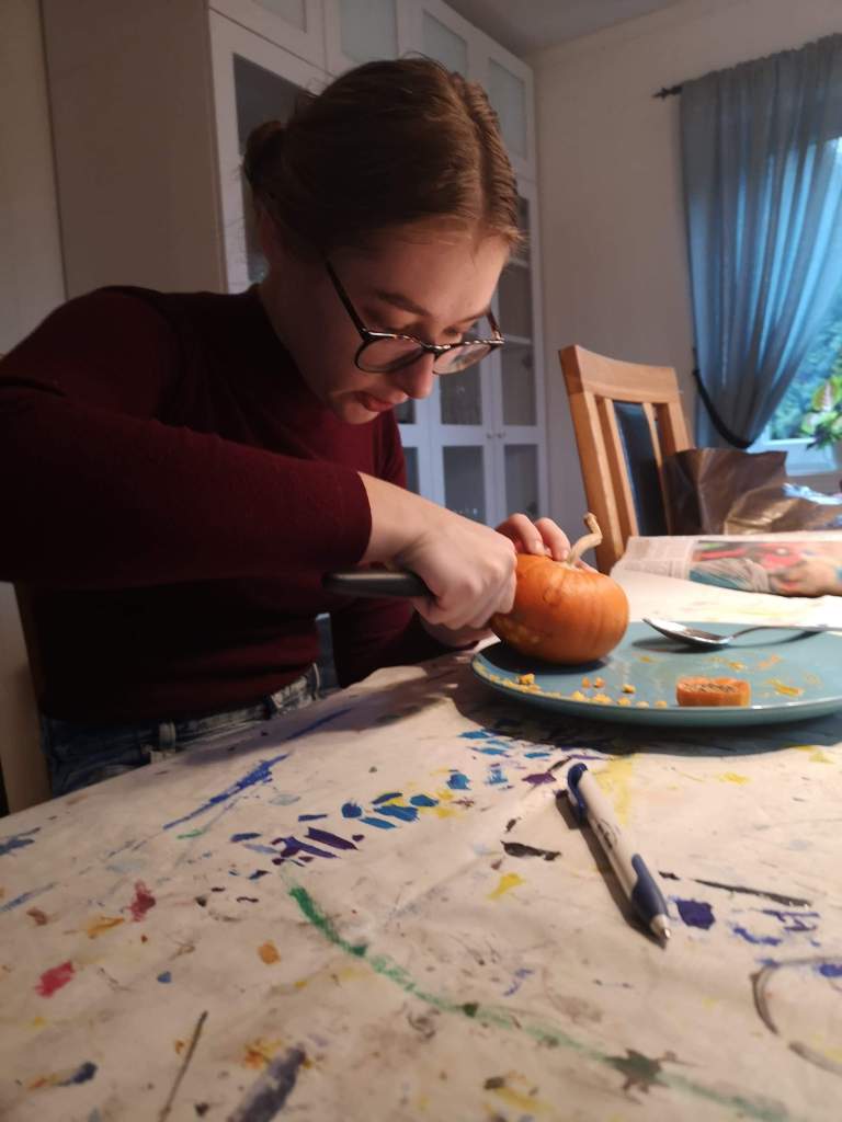Aber auch diese Woche ging vorüber und das Wochenende stand vor der Tür. Da Halloween hier viel größer gefeiert wird als in Deutschland, waren wir zu einer Halloweenfeier von Lena und Ingrid eingeladen. Aber aufgrund der aktuellen Situation entschieden wir uns allerdings dazu, abzusagen, denn nicht nur in der Schule gab es neue Coronaregeln. Generell sollen sollten sich nicht mehr als 5 verschiedene Haushalte treffen. Nora hatte ebenfalls eine kleine Feier für sich und ihre Freunde geplant. Diese konnte sogar stattfinden, da nur 3 andere Leute kamen. Am Abend gesellten sich Martina, Evelin und ich uns auch noch dazu und es wurde immer lustiger, je später es wurde. Zum Ende zündeten wir auch noch die zuvor geschnitzten Kürbisse an. Den Abschluss besiegelte dann noch eine kleine Wanderung durch die Dunkelheit. Naja, eigentlich war die Nacht nicht wirklich schwarz. Es war nämlich das erste Mal seit 2001, dass es einen Vollmond an Halloween gab. Dieser leuchtete auch prachtvoll in der Ferne und erleuchtete so ziemlich alles.
